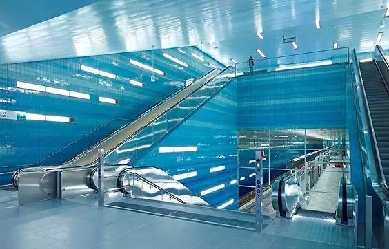 或许德国给人的印象就是冷静、机械、工业的,而慕尼黑这座城市地下却有着无比绚烂的色彩。高纯度彩色的墙面和灯光,让人感到自己乘坐的不是地铁,而是进入了某个游戏世界。